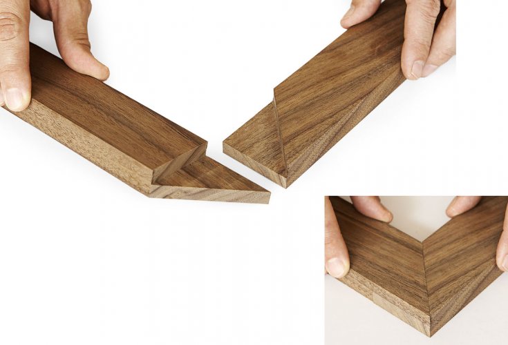 As I was building a few frames recently, I decided to try a new, more challenging joint for bringing the frame pieces together: a mitered half-lap (see below):